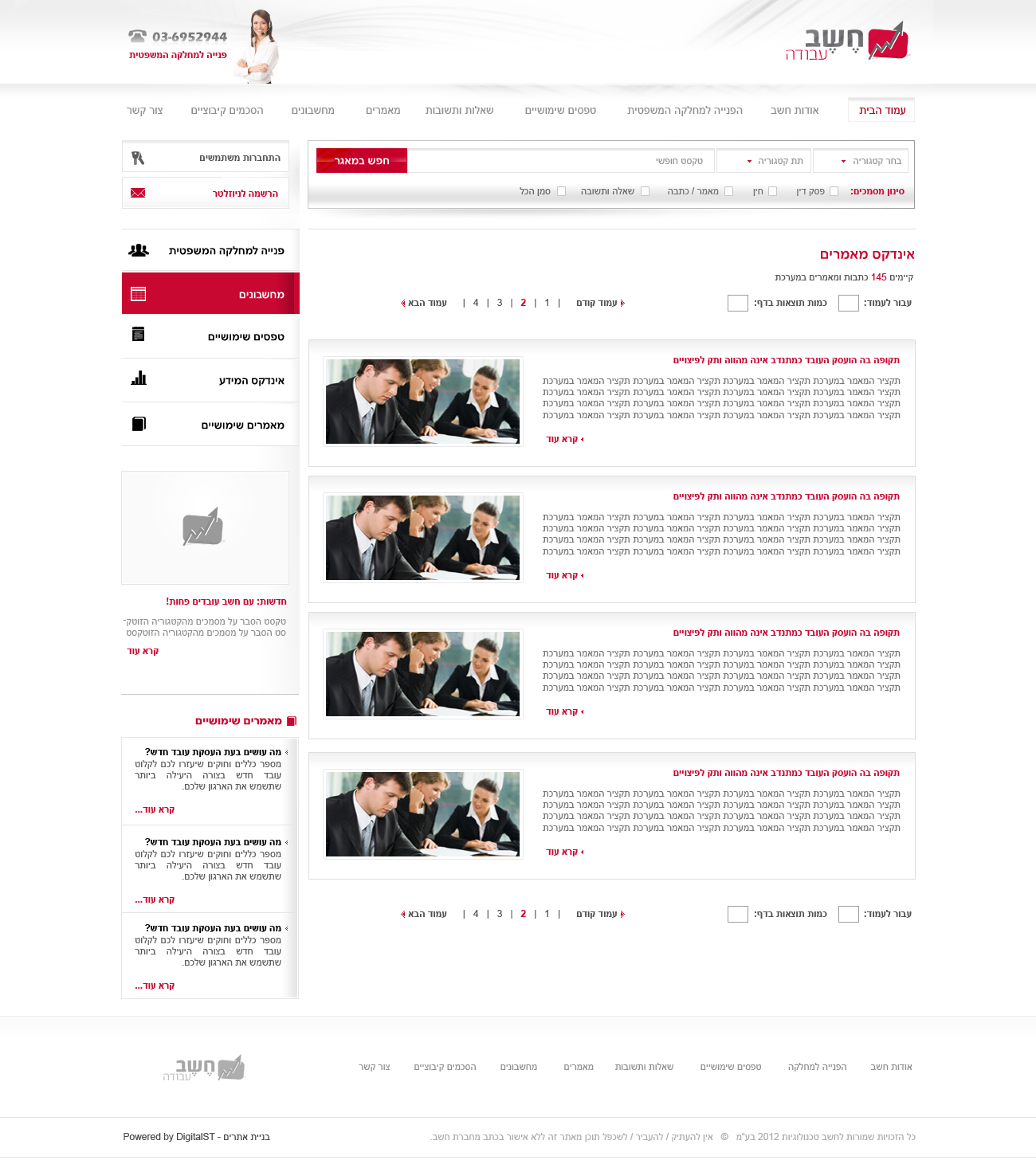 בפרויקט זה פיתחנו מערכת מידע אינטרנטית מתקדמת הכוללת התחברות מאובטחת למנויי החברה; המערכת בנויה סביב עץ נושאים מעמיק ופרטני המאפשר ניווט מדויק בין תכנים מורכבים; שילבנו מנוע חיפוש פנימי חכם המאפשר איתור מידע מהיר לפי קטגוריות; מונחים; והרשאות משתמש; הפיתוח שם דגש על יציבות; ביצועים; וחוויית שימוש נוחה גם בעבודה עם נפחי מידע גדולים; התוצאה היא מערכת מידע יעילה המשרתת משתמשים מקצועיים לאורך זמן.