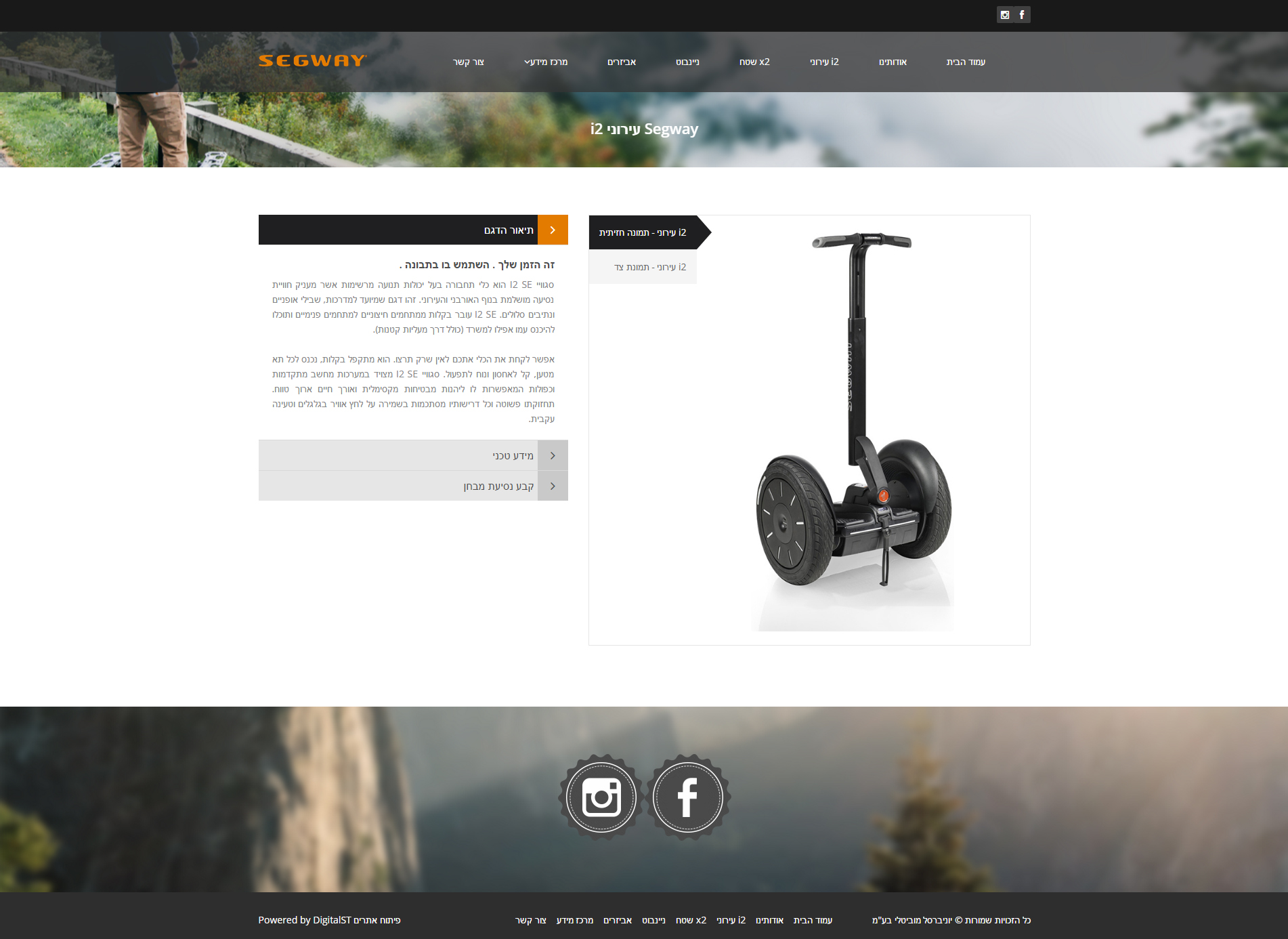 הקמת אתר תדמיתי רספונסיבי (תואם טלפונים וטאבלטים) למותג Segway מבית UMI. הפרויקט כלל מספר אפשרויות פונקציונליות למעבר בין תצוגת דגמים - החל מזוויות הדגם לתתי דגמים משניים. הניווט באתר הותאם לכל סוגי המכשירים וכלל את צבעי המותג (כתום ושחור) כפי שהוצגו באתר העולמי. בנוסף פותח קטלוג אביזרים הכלל את כל האפשרויות הנלוות לסגווי שלכם.